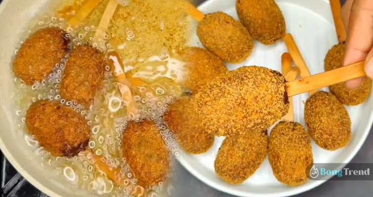 ➥ এভাবে সব কত পপস্টিকগুলোকে তৈরী করার পর ১৫ মিনিটের জন্য ফ্রিজে রেখে দিতে হবে। ততক্ষণে গ্যাসে কড়া চাপিয়ে তাতে তেল গরম করে নিতে হবে।